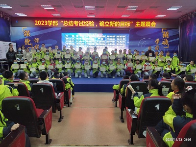 在11月23日,星期一上午,我校2023学部的同学们在多动能厅举行了“总结考试经验,确立新的目标”为主题的晨曦有约活动。