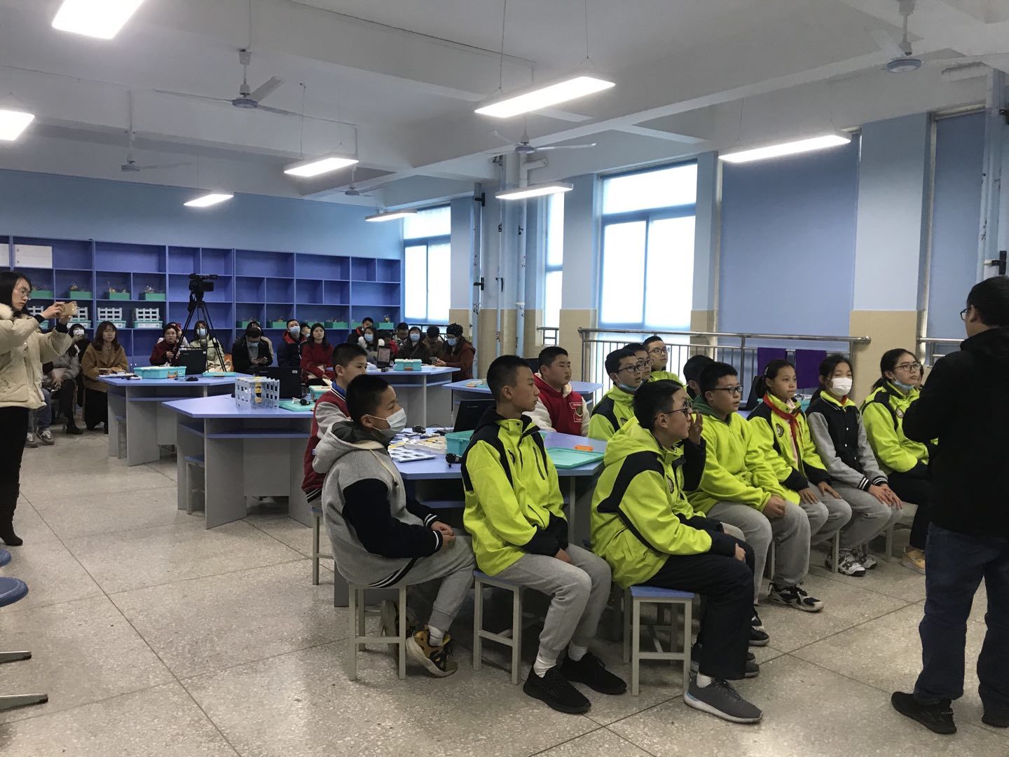 随后,调研组走进我校的人工智能课堂,观摩我校优秀教师:何明贤老师的课堂。我校创新技术中心何明贤老师以一节《人工智能之智能机械:环境监测(第二课时)》作为课例呈现给参加调研的老师们,何老师在课堂中,深入浅出地给学生讲解了温湿度传感器的检测原理,数据读取的方法,温湿度传感器应用范例,同时细致地教学生编写程序,大胆地让学生在完成课堂规定任务后去实践创新。