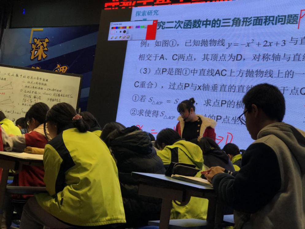短暂的休息后,由陈晓君老师继续带来精彩的《二次函数中的动点三角形面积》课堂,在教学中,陈老师思路清晰,围绕二次函数中三角形面积的计算,与学生共同探讨多种解决方法,引导学生去逐个解决出现的问题,并时刻关注到每个学生对知识的理解与掌握情况,课堂互动频繁,气氛热烈,节凑紧凑。