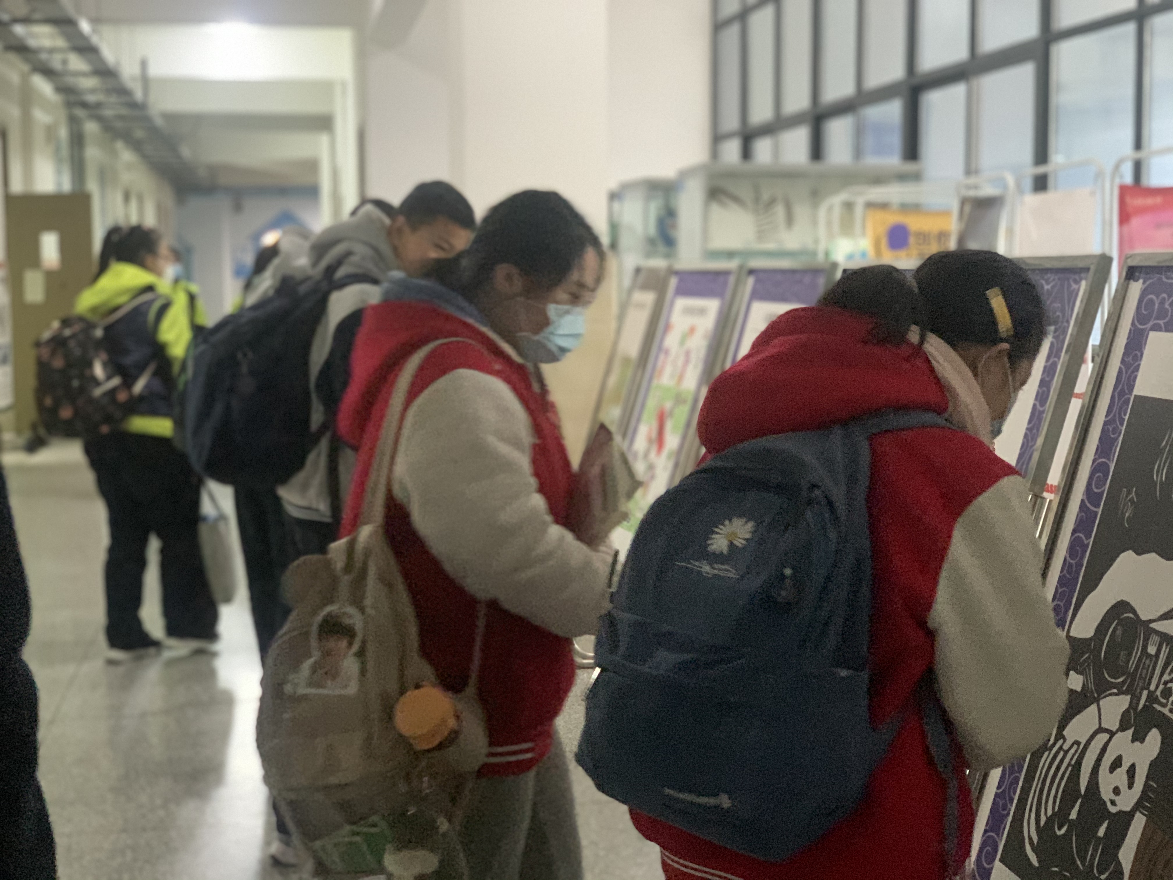 此次巡展展出的优秀作品,来自区各中小学。同学们通过漫画、歌谣、案例、法律规定、小故事、小贴士等多种形式,展现普法小知识,青少年在创作过程中自己去看,自己去思考,在创作中,感受法制的力量。展览吸引了不少泡中同学驻足观看。