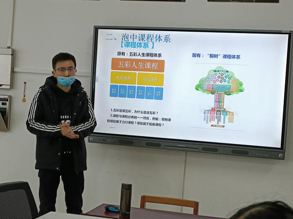 3月25上午,由泡中研学项目部负责人张帆老师为各位校长介绍泡中研学课程体系。带着学生走出教室,亲身体验、研究人类生存的自然环境和社会生活,激发学生的学习兴趣,拓展学生学习深度,培养学生的学科思维、人文与科学精神,促进学生科学素养和人文素养的协调发展。下午研修全体小组成员参加青羊区生涯教育研究项目工作会。