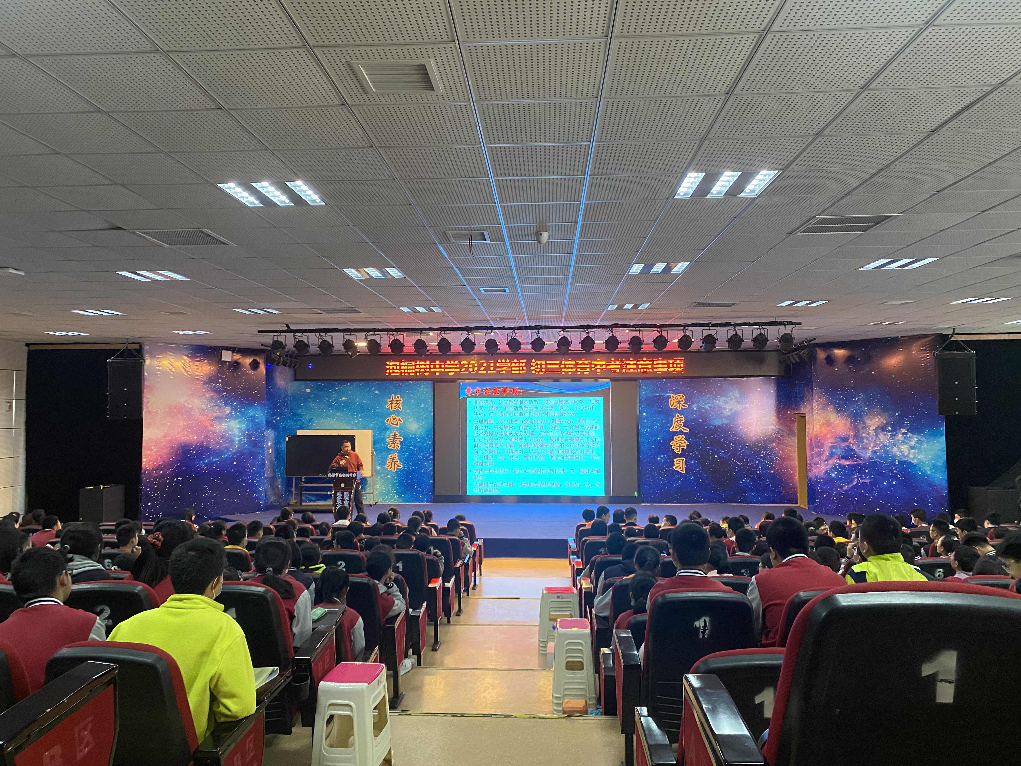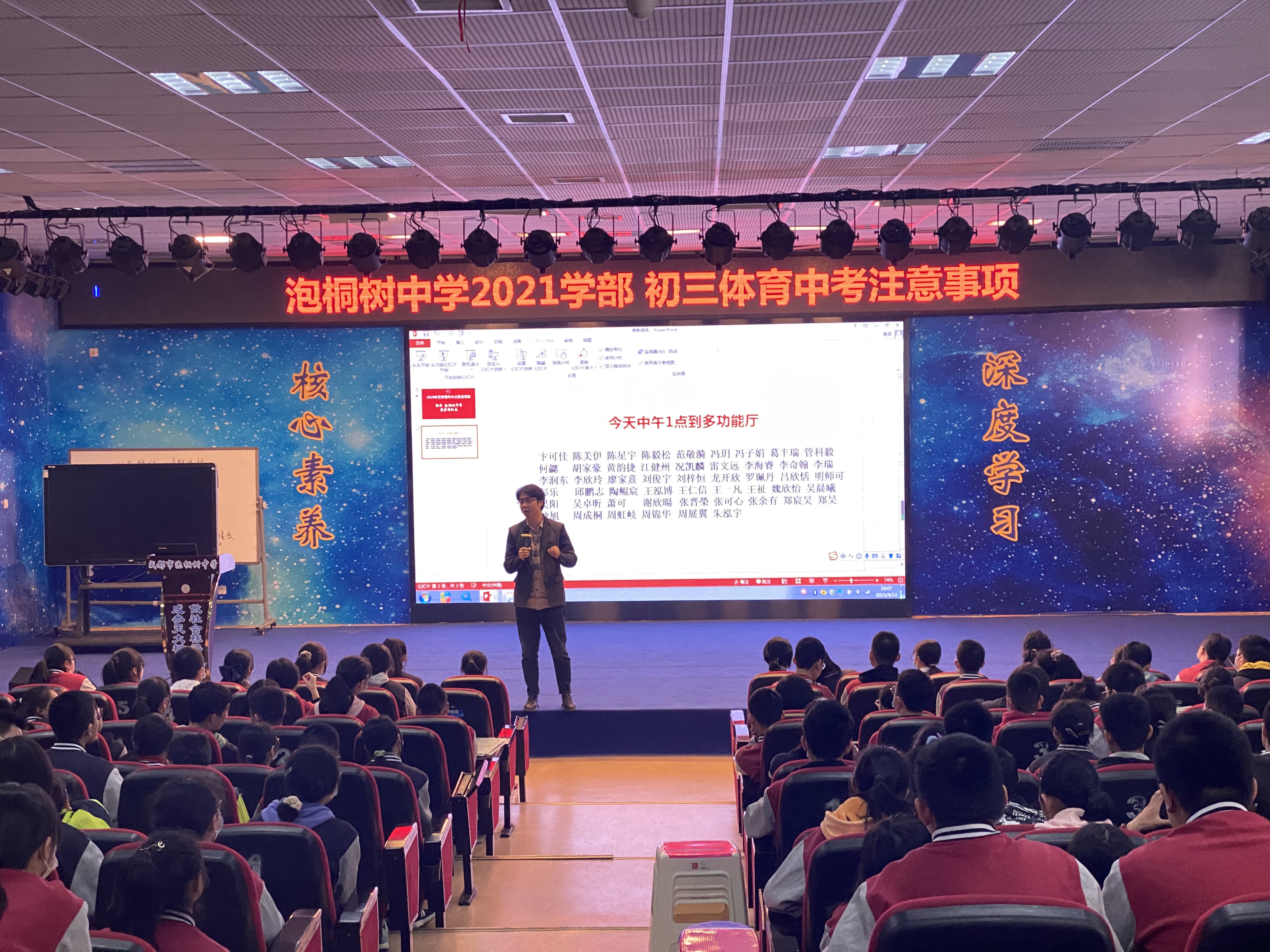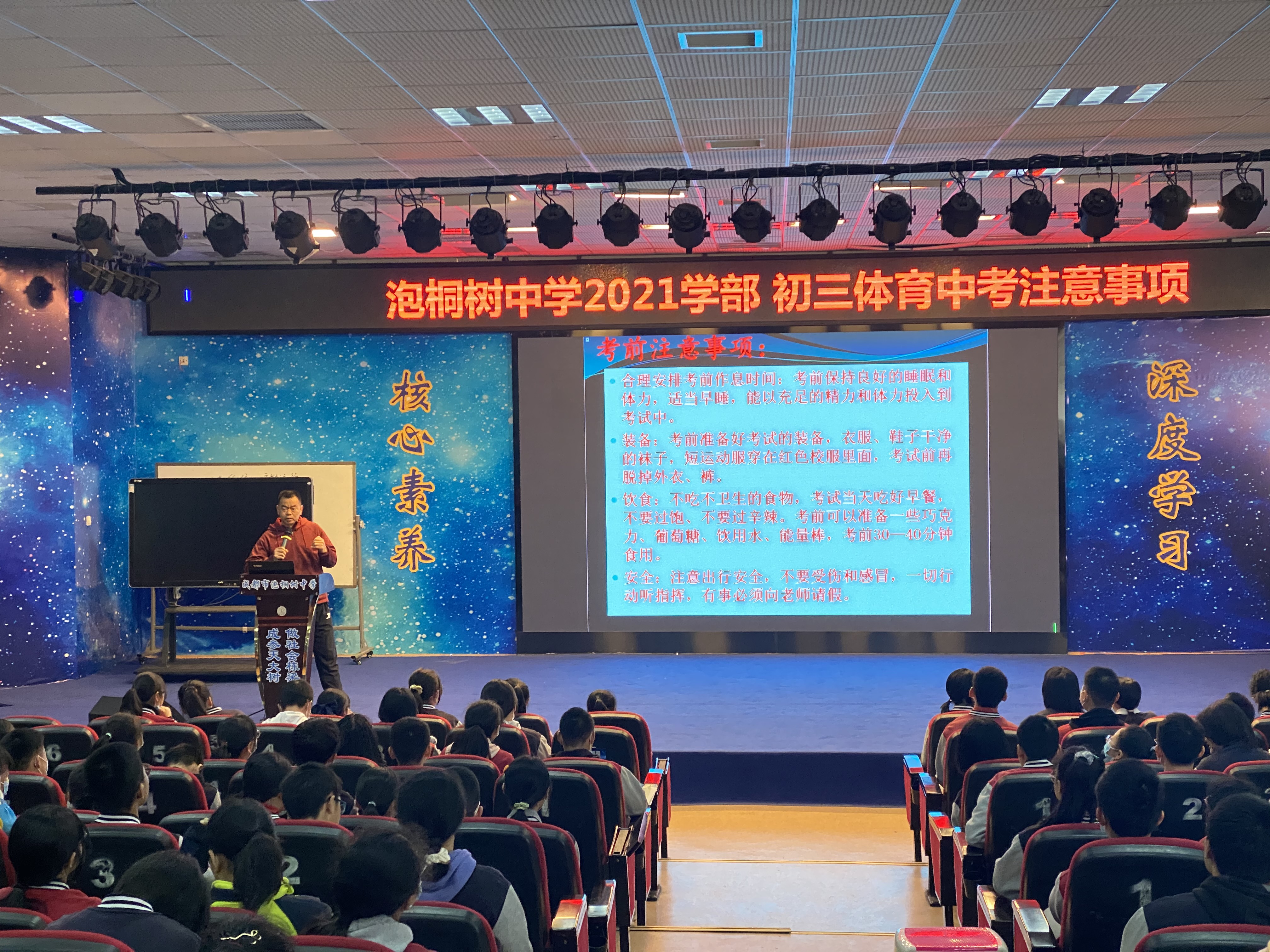4月12日,距离2021年中考第一仗——体考,还有4天,同学们即将面临中考的第一关挑战,2021学部的同学们齐聚多功能厅,张勇老师向同学们进行考前最后的温馨提示和动员。