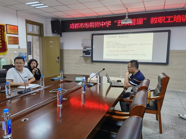 为了深入学习贯彻教育部关于“中小学生作业管理、睡眠管理、手机管理、课外读物管理、体质健康管理”等文件精神。6月15日下午,成都市泡桐树中学组织全体教师认真学习文件精神。