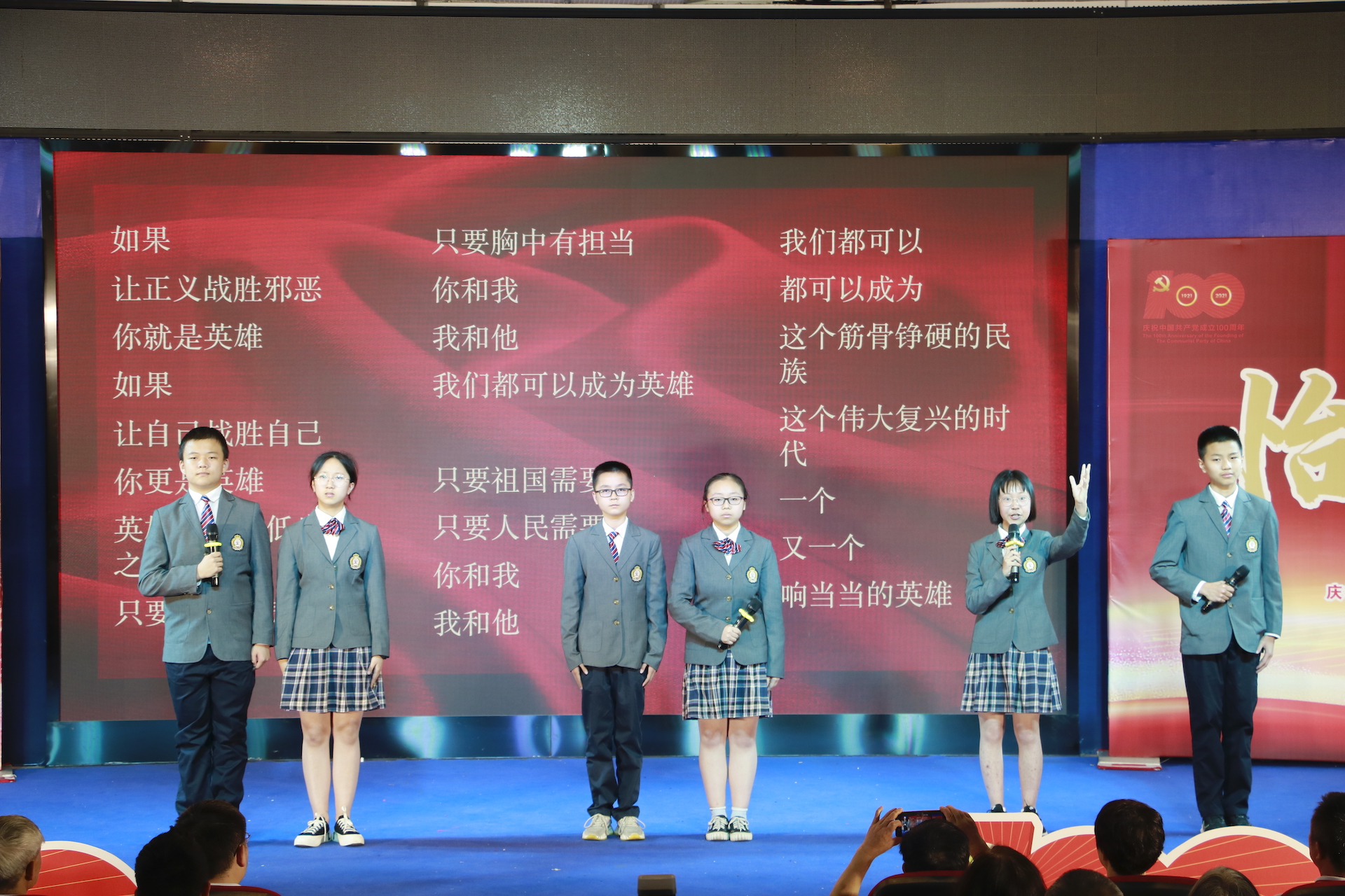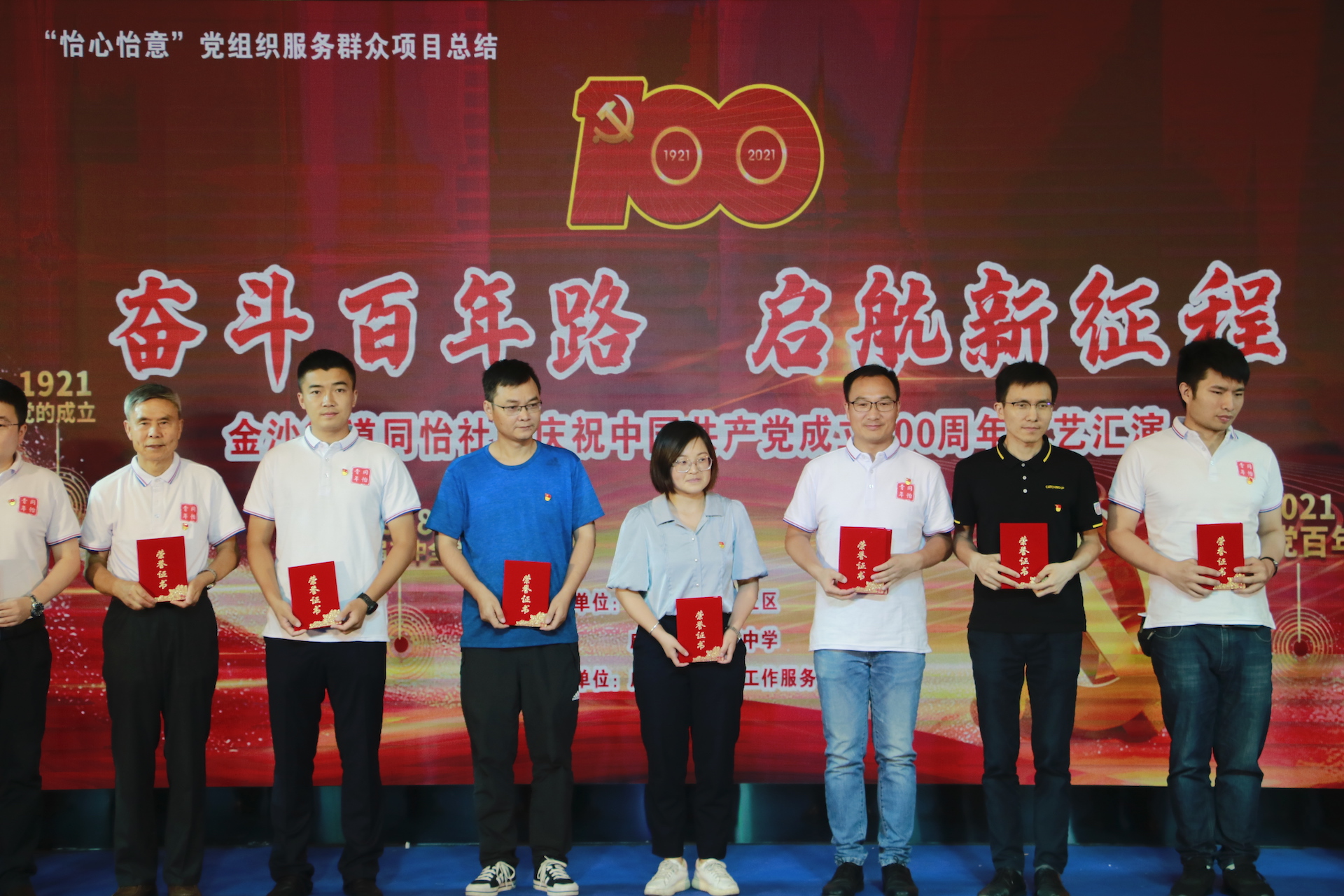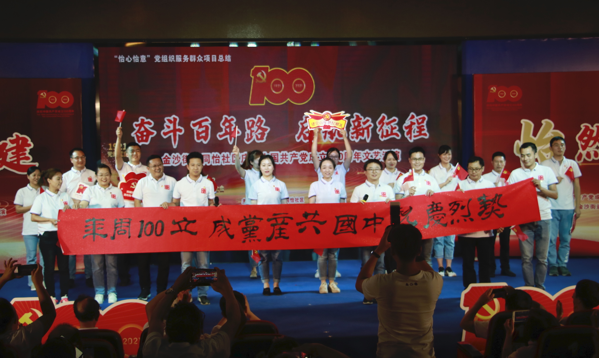 100年风雨兼程,100年风云巨变,100年峥嵘岁月,100年砥砺前行,我校合作同怡社区组织的整场演出节目形式新颖、风格独特,用丰富多样的演出形式、激情昂扬的演绎热情,唱响时代主旋律,热烈庆祝中国共产党成立100周年。