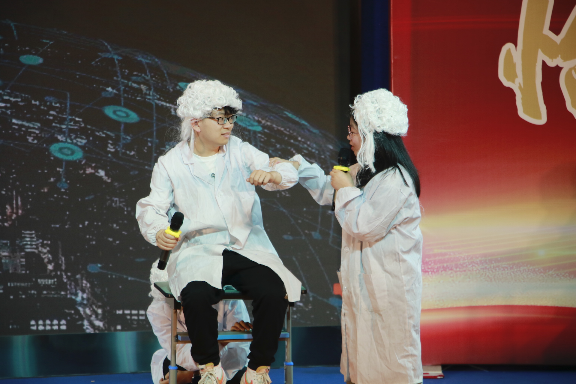 泡中物理组的老师们用幽默风趣的学科特色诠释了一出精彩的舞台剧,展现了我国日新月异的科技发展。