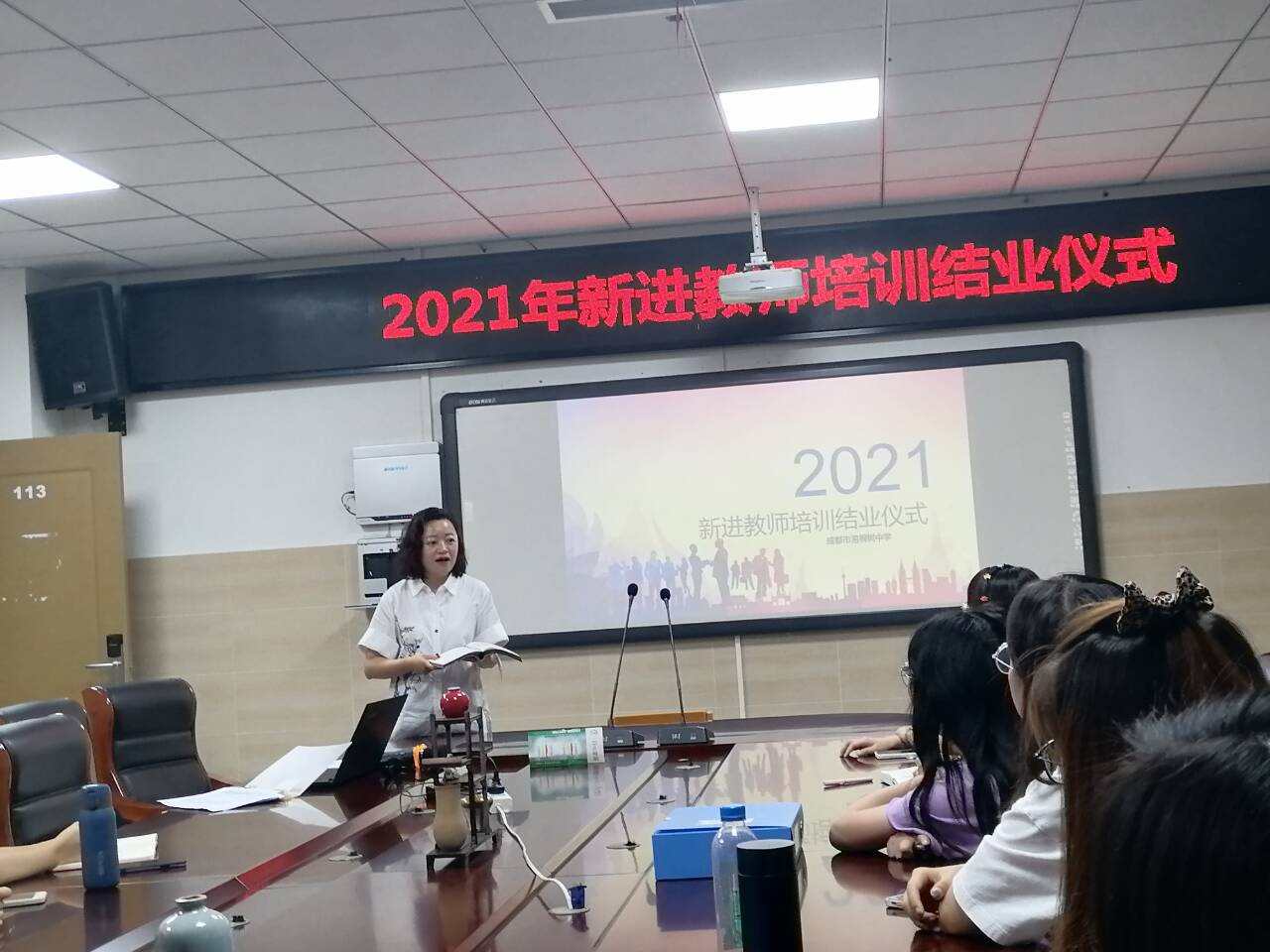 最后,感谢。谢谢学校为我们提供的这次培训,谢谢教师书院,谢谢各位分享的老师。在你们的帮助下,我们才能尽快适应新环境,融入泡中这个大家庭。