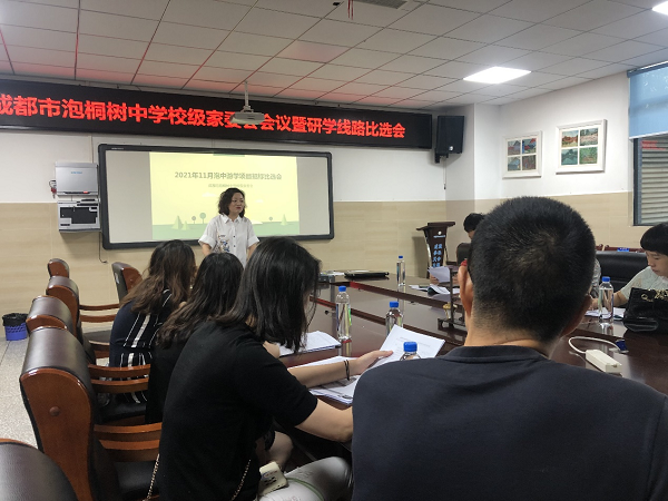 2021年8月22日,成都市泡桐树中学在113会议室召开了“成都市泡桐树中学校级家委会会议暨研学线路比选会”。全体校级家委会成员参加会议,成长联合会副主任张帆老师主持会议,李霞霏校长列席会议。