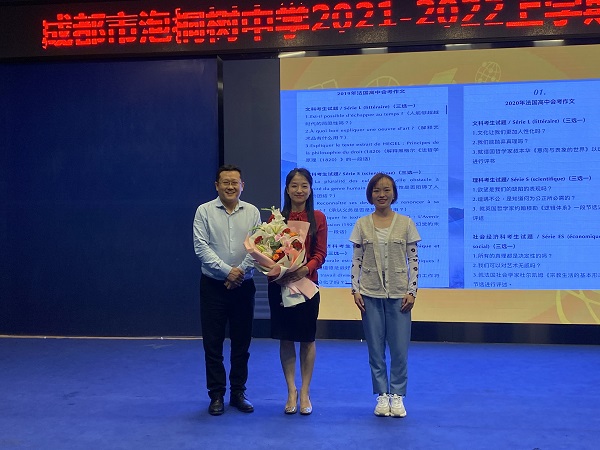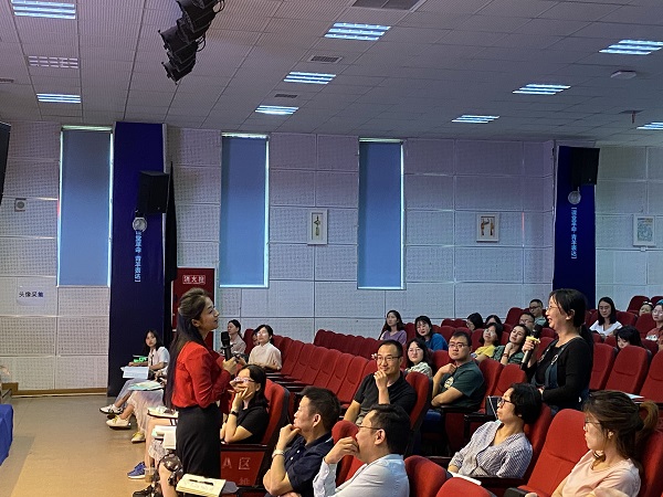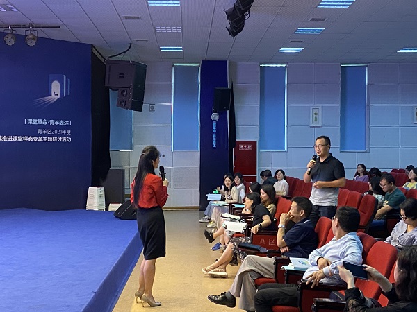 接下来,成都市青羊区教育科学研究院袁文所长为全体教师带来了一场“智慧盛宴”——双减背景下高效课堂思考的讲座。袁文所长指出,“双减政策”是国家战略所需,它对教育提出了更高质量的要求,给学校教学管理机制带来了挑战,对全体教师、教研组的教学效益、教研能力带来了新的考验。因此,在此背景下,教学应当回归课堂主阵地,提高课堂教学效率,改善作业布置的质量,激发学生学习内驱力,实现学生的自我发展、良性发展。学校、教师要紧跟国家教育改革发展方向,及时更新教学理念,做好组内教研、跨学科教研、甚至是跨学校教研,不断向先进地区学习。老师们也认真倾听,积极与袁所长互动交流,碰撞出新的智慧火花。