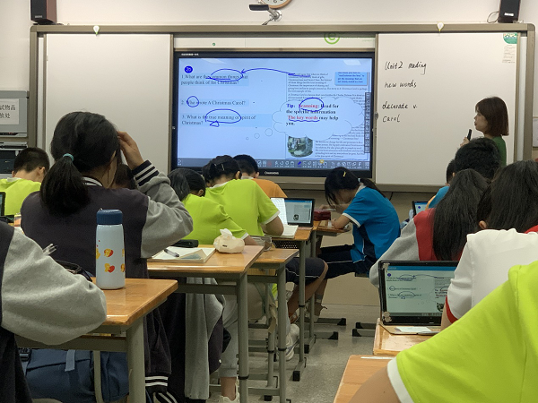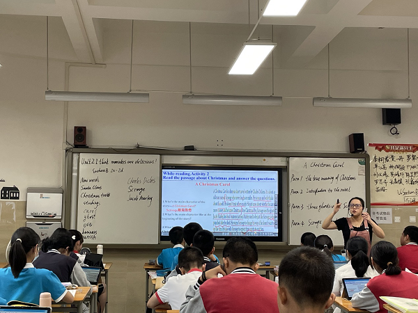 刘丹老师的课堂节奏紧凑,板书清晰,提问层层推进,注重细节,对文章中人物关系分析十分清晰,紧紧抓住学生们的注意力,学生笔记重点清楚。