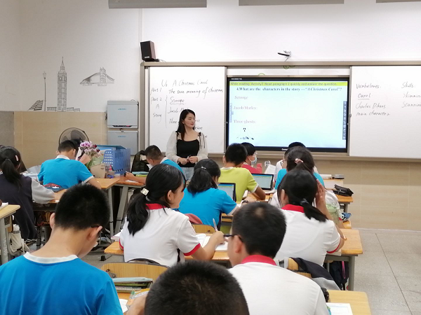 曹莉苑老师的课堂师生互动多,学生十分自信,回答问题,朗读课文声音洪亮,提问指向明确,对学生点评有针对性,活动中进行阅读微技能渗透。