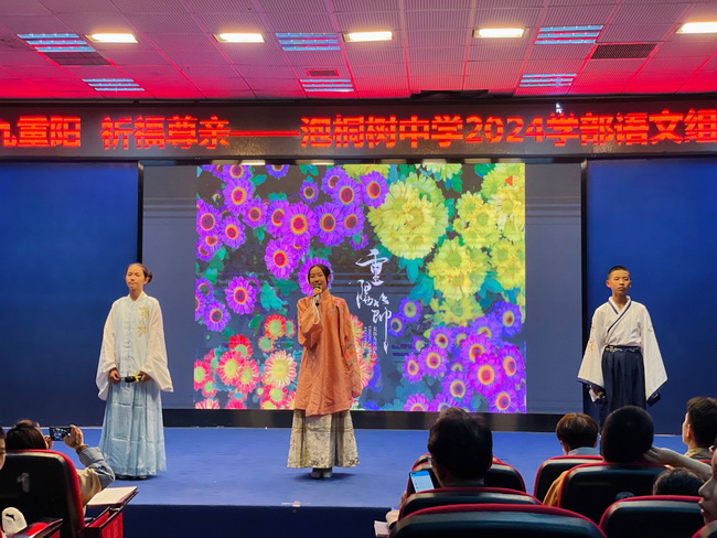 2021年10月14日,农历九月九重阳节,这一天的语文课是泡桐树中学的语文特色课程——重阳节专题。