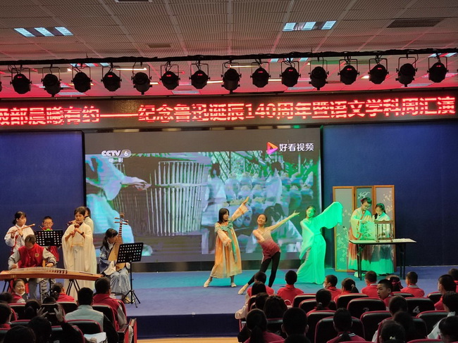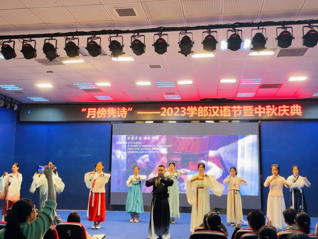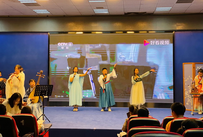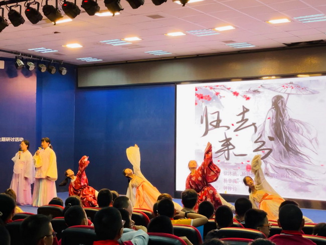 语文七班和十四班的同学为我们带来了古筝表演。古筝是大家十分熟悉的中国汉文化传统乐器,它或悠扬或急促的婉转琴音,从千年前一直飘到此时此刻我们的现场。