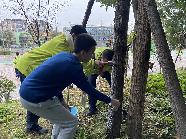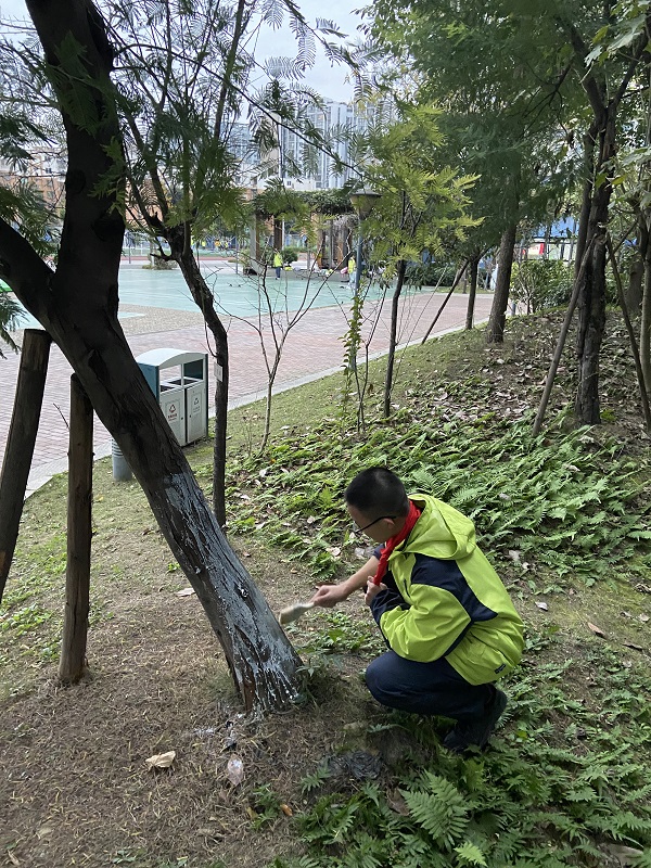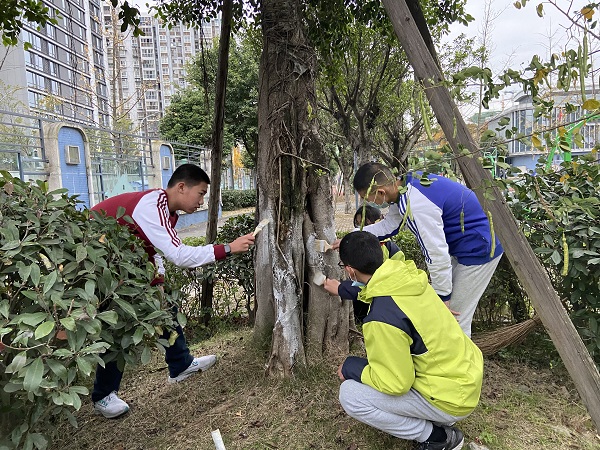 2021年11月29日星期一下午,成都市泡桐树“保护环境,创文明校园”主题志愿者活动正式拉开序幕。本次活动以“保护环境,创文明校园”为主题,通过志愿者们给学校的树木进行涂抹药水,保护大树。