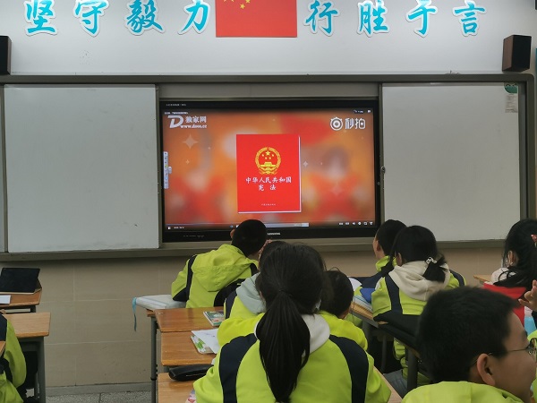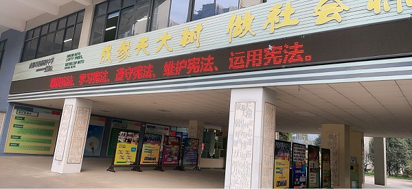 同时,学校利用多种方式营造浓郁的学习和宣传宪法的氛围。利用电子屏、教室外墙等场地充分宣传“国家宪法日”及相关法治标语,提高全校师生对宪法的认识。