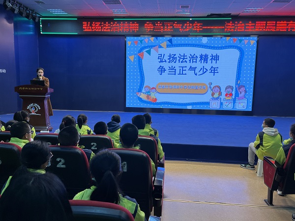 12月13日上午,同学们齐聚在多功能厅。举行了以“弘扬法治精神,争当正气少年”为主题的晨曦有约活动。