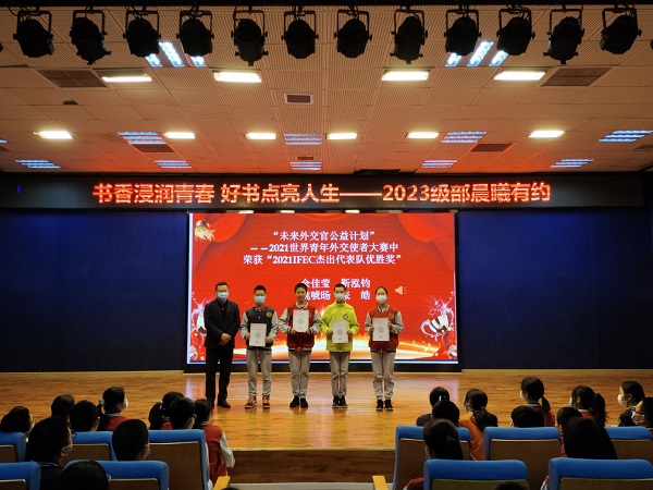 纸上得来终觉浅,绝知此事要躬行。就有这么一些同学,将书本的知识转为了切实的行动,在“未来外交官公益计划”——2021世界青年外交使者大 赛中取得了优异的成绩。由我校领导为他们颁发了荣誉证书和奖品,以兹鼓励。