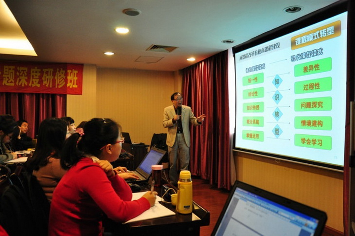 赵老师说,知识经济时代要求学生创新,全球数字化时代要求考查学生的学习过程,终身学习的社会要求学生强大的学力。社会的转型,要求教育改革和课程转型,从根本上要求知识转型,而知识转型又决定了课程模式的转型。我们的课程开发必须上承国脉,下接地气。学校课程计划关键要寻找突破口,展现创新点,保障针对性,而教师的知晓度、认同度和实践的成效度,则是课程计划实施关键中的关键。