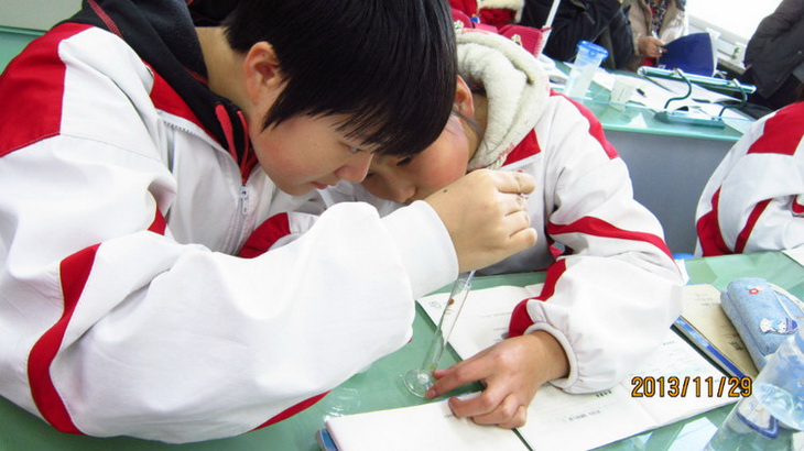 而昌平前锋中学则呈现了一节难得的“全程探究”课。在整个初中生物的学习中,能够在课堂上完成的全程探究活动非常有限。而王老师很好的设计和利用了课堂的时间资源,不但顺利的完成了“唾液对淀粉的消化作用”的学生探究实验,还补充了“唾液能否消化蛋白质”的演示实验。整堂课体现了教师平时对学生实验操作的规范训练很到位。