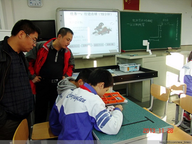 翻看听课安排,发现有一节智能机器人课。通过问询明白了北京的机器人课是属于劳技组的。正好,我对智能机器人课有一定的教学积累,在咱四川,机器人课与信息技术课是不分家的。市教研员郑老师听了我的想法后,与劳技组的教研员孟老师商议决定先听一节智能机器人教学课后再听一节信息技术课。