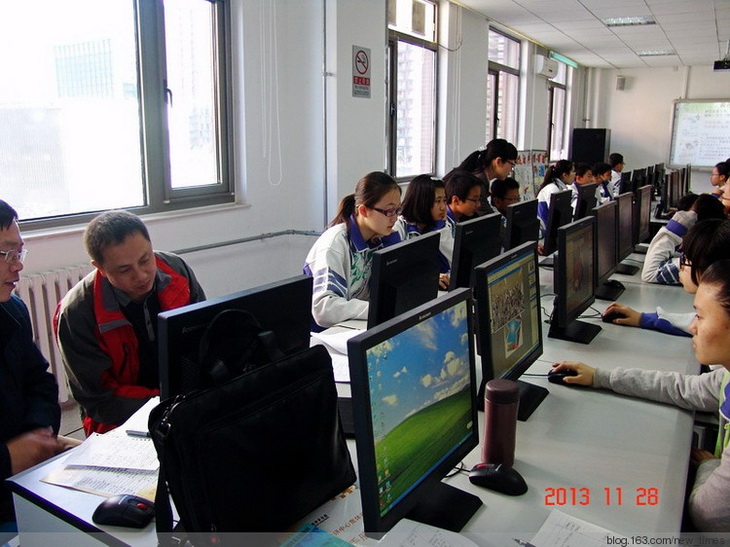 到了学校,与市基教中心的初中信息技术教研员郑老师见过面后,就进入了学习的正题。郑老师谈了北京信息技术课程的架构与呈现形式及开课现状。朝阳区信息技术教研员黄老师简要地给我介绍了他们区信息技术课开展的情况。陈经纶中学分校的同行周晓初老师介绍了当天上午的听课安排。