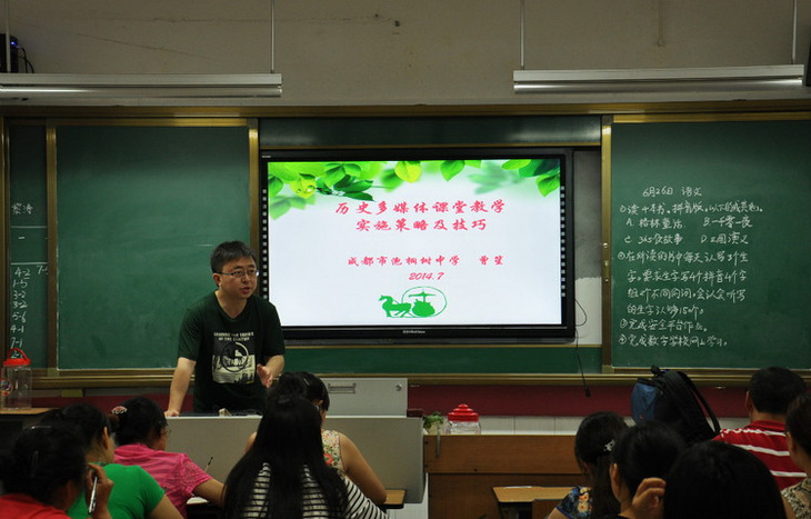 2014年7月6日下午,“四川省信息技术应用能力提升工程——信息技术骨干教师培训”活动在成都师范学院举行,我校历史老师曾笙担任主讲教师就《历史多媒体课堂教学实施策略及技巧》向全体参会教师做了相关指导。