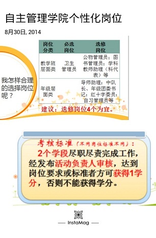 为培养学生的服务意识和管理能力,让学生参与到学校层面和学部层面的管理中来,学校成立了学生自主管理学院。通过这个平台,策划并组织开展一系列的活动,引导学生发展,服务学生需要,反馈学生诉求,排解学生困惑,提升学生自我管理能力,从而引导学生实现自我管理。