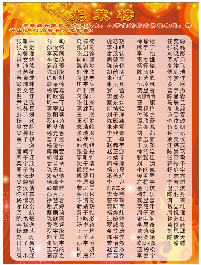 泡桐树中学9月行为标兵