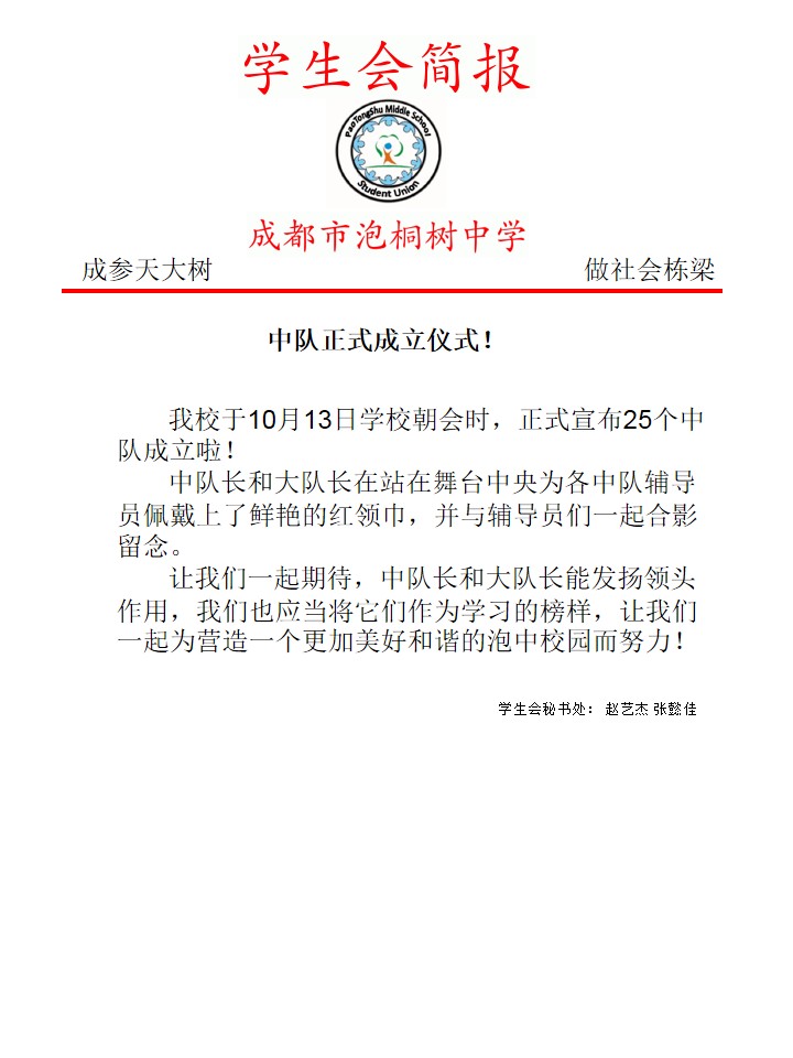2014年10月13日泡桐树中学少先队建队仪式