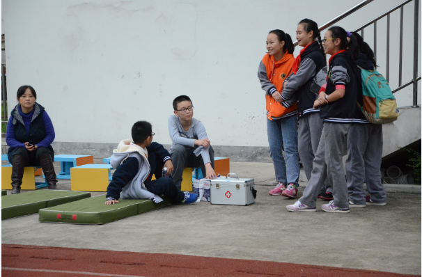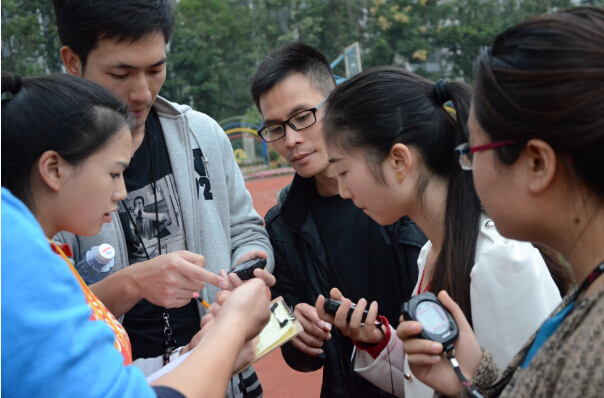 跑道边、操场上,还有同学自发的为运动员加油鼓励。以及比赛完毕后还有学生会同学为大家体贴的服务,运动员得到更好的休息。
