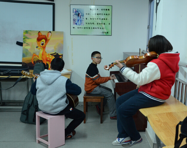 我们这里的每一位同学都身怀绝技,即使没有任何的奖状、证书,我们至少还能在这忙碌的学习旅途中挤出任何的时间来追寻自己的音乐之梦!