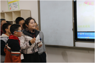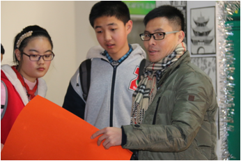 同学们在讨论下午活动海报 容老师与同学们讨论活动海报