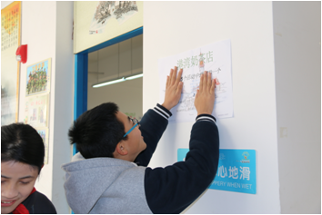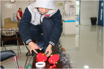 学生会的同学们在布置场地 组织部部长戴蓝睿:慢工出细活