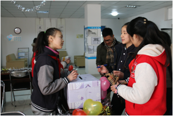 在当天,学生会组织部、宣传部、生活服务部齐动手,共同布置活动会场,学生会两位主席蔺彦之和周馨雨以及团委书记容帅老师也帮忙组织开展会场任务。就在游园活动开始的时候,”心迹穿越“的会场早早地被学生们围得是里三层外三层,纷纷将自己最真挚的祝福写在贺卡上。
