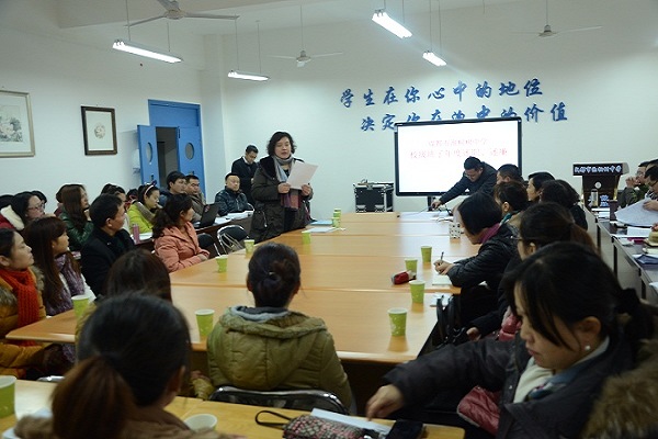 1月20日下午4点,青羊区教育局办公室周松林主任、计财科熊萍科长等一行领导到我校开展2014年度校级干部考核工作,我校全体教职工及学生家长代表、社区工作人员代表共同参与了此次干部实绩考核测评工作。