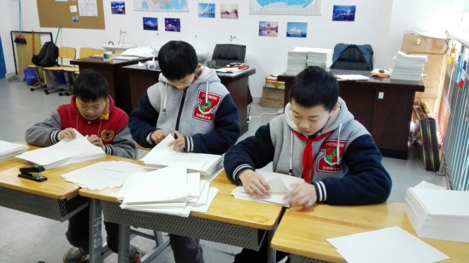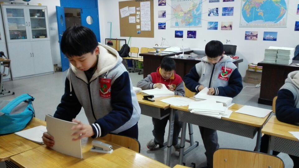 望着三百多份需要订制的寒假生物地理作业,老师们可犯了难,对于两个学科的四位老师来说,工作量也不小啊。就在这个时候,可爱的泡中娃娃们出现了,整理封面的、数内页的、负责订制的,孩子们各司其职,十分认真,干起活来颇有小大人的风范,让老师们感到一阵温热。