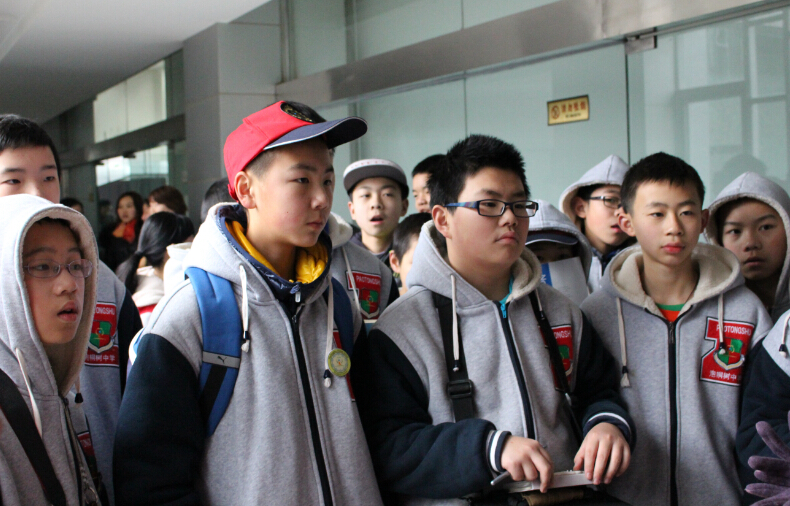 很快公司的负责人赵伶俐小姐带领我们走进了公司的办公区。每到一处她一一为我们讲解。同学们各各奋起疾书,赶紧记下。我们来到了“机场塔台视景模拟机”的现场,同学们站上塔台,飞机动了。是那么的逼真,360°无缝连接的投影技术。让同学们为之感慨、为之感叹。走出了展厅,同学们开始跃跃欲试,每个组都想把准备好的问题一一询问赵小姐。举手、举手、再举手。赵小姐一一回答了同学们的问题。