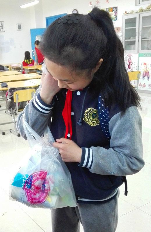 上周,我们进行了一周的生物学科活动——“酸奶制作品鉴周”,同学们在品尝酸奶的同时,无意间产生了很多垃圾。比如自备的纸杯、塑料杯、塑料勺、吸管等等。让我感到欣慰的是,绝大多数的孩子们都自觉的将垃圾放在垃圾桶里。特别是周一菲同学的垃圾袋,让老师们眼前一亮!