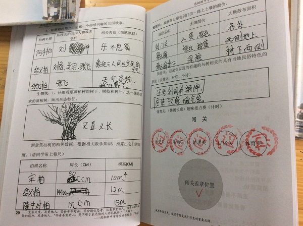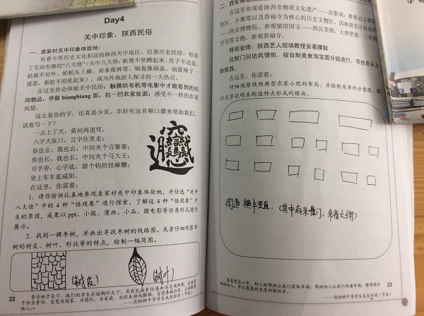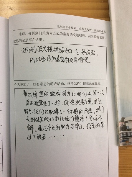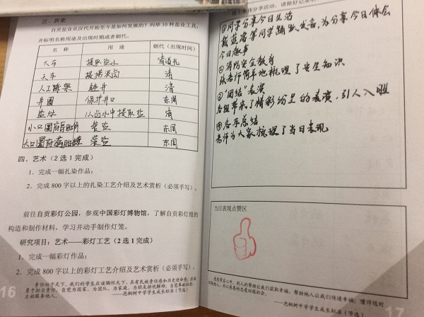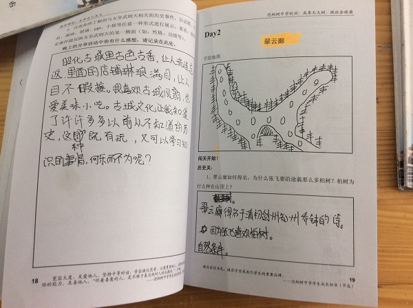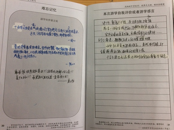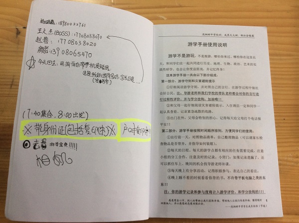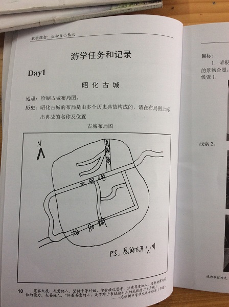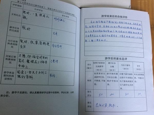 特别表扬贺昱睿同学,自己制作了一本《游学宝典》,很棒!另外,市内游学的周子渲、伍奕帆同学都做得很好,提出表扬!