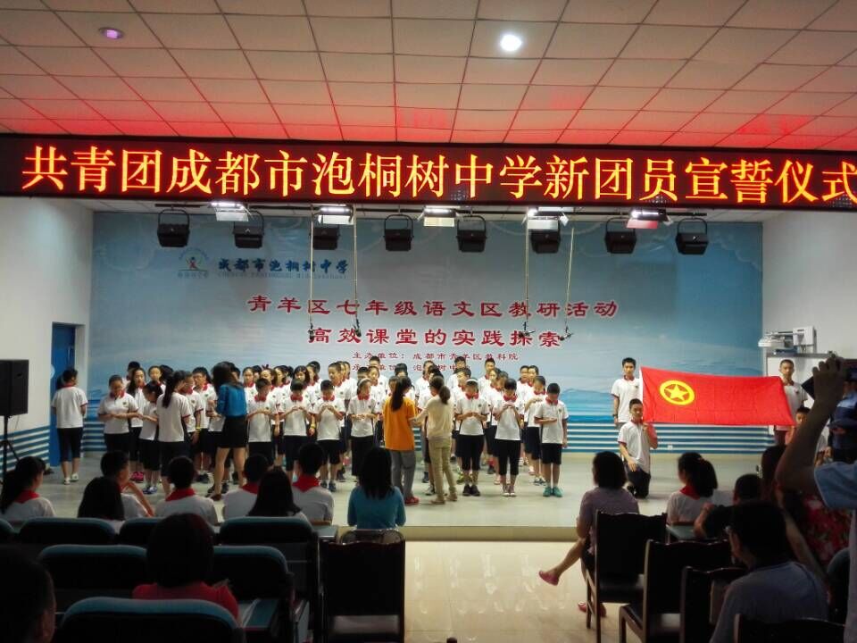 最后容老师宣布共青团成都市泡桐树中学首批新团员入团宣誓仪式到此结束。