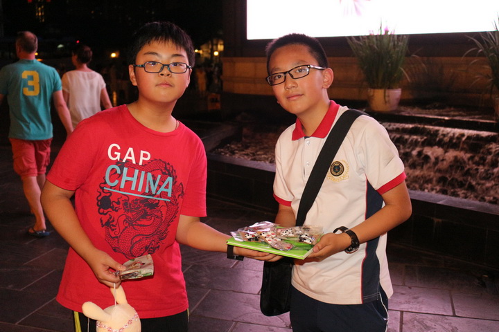 起初大家推销时也曾受到游客的冷眼相待、不屑一顾,大家也曾气馁,但不久,经过磨合,同学们不再胆怯,不怕被拒绝,逐渐了找回信心,义卖终于逐步进入正轨。义卖时大家大方自信,坦率真诚,敢于吆喝,敢于介绍本次活动,经过大家的齐心协力,取得了喜人的成绩——共募集670余元。本次义卖圆满落幕!