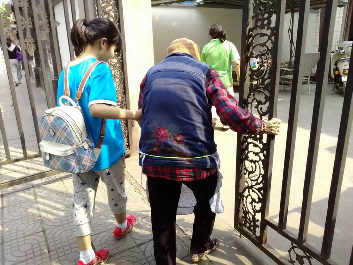 扶步履蹒跚的老奶奶进门