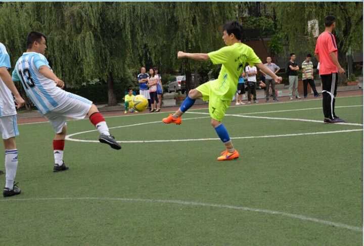 9点钟,开战了,爸爸队员们不顾足球赛场上的“高龄”,快速的奔跑着,跳跃着,对方队员也卯足了劲儿,毫不示弱,精彩的场面频频出现。美妈啦啦队在赛场边呐喊、不断为场上的爸爸们加油鼓劲。紧张激烈的氛围持续着,很快,1比0,泡桐树中的爸爸们打破了僵局。看台上,美妈们欢呼起来:“我们进了,我们进了!”这一喜讯立即上传到了泡桐树中学的QQ群。率先进球的爸爸信心大增,乘胜追击,紧接着又为泡中打进第二粒进球。泡中爸爸们的宏伟气势打得对方球员无还手之力,不仅自摆乌龙球、还发点球不中,最后,顽强神勇的泡中爸爸们以4:1战胜对手!赛后,高仁辉校长和爸爸队员们亲切握手交流,衷心感谢爸爸们的辛苦付出,感谢泡中美妈们亲情助阵!