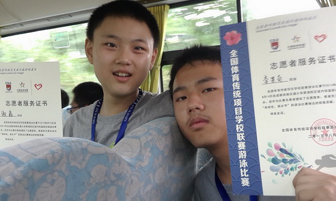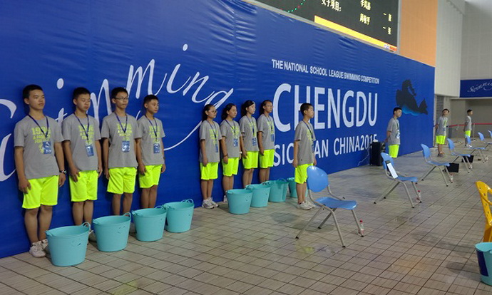 2015年8月10日至13日,在容帅老师、赵时莉老师的带领下,我校20名学生于西南交通大学犀浦校区担任了2015年全国体育传统项目学校联赛游泳比赛的志愿者。在此期间,同学们本着甘于奉献,认真负责的精神,展示了泡中学子的青春风貌!