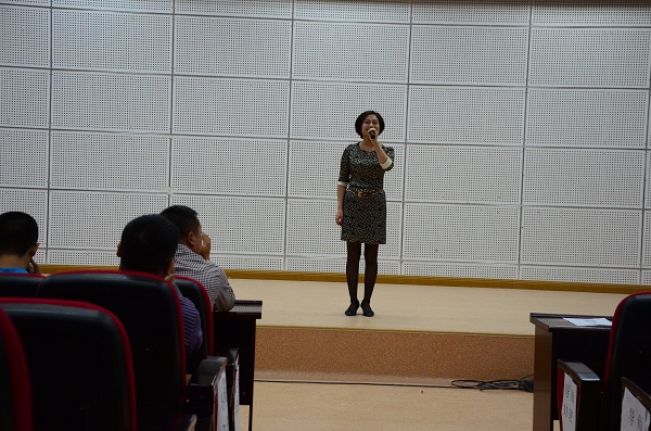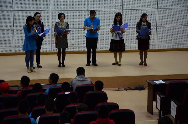 看,导师12班的家长代表们正在朗诵自己创作的诗歌-----《献给辛勤工作的泡中园丁们》