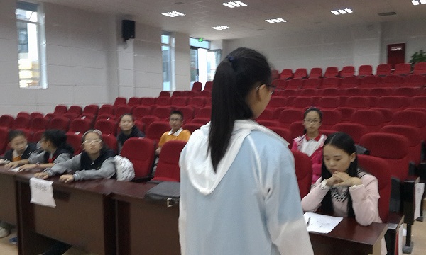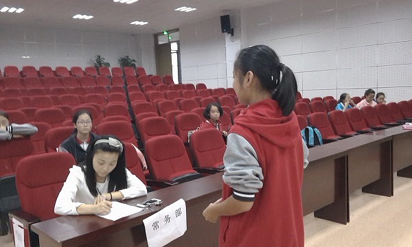 2015年9月23日下午17:10—18:10,在一楼多功能厅进行了泡中第一届社团联盟招聘会。2017学部、2018学部共29人报名,共22名同学参与面试招聘。在赵时莉老师、吴晓芹老师、文秋鳗老师和部分非竞选同学的共同见证下,这22位同学分别进行了3分钟的自我简介并阐述了对竞聘岗位的认识、回答了3位评委老师的提问,经过激烈的角逐,最终有14名同学成为第一届社团联盟成员。