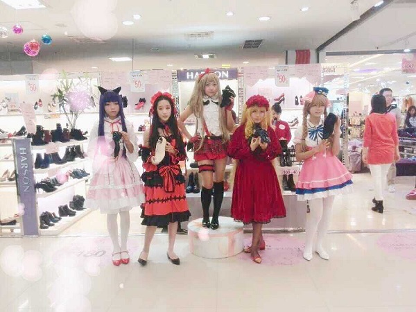 2015年10月1日,在成都市青羊区苏坡东路12号西单商场1楼HARSON鞋店内,我校AAC动漫社团的蔡美仪、冯子娟、傅馨月等社员接受了HARSON鞋店的邀请,结合当红动漫人物造型,为HARSON鞋店完美地展示了HARSON2015秋冬经典小红鞋系列、时尚运动板鞋系列。其中,蔡美仪cos的是“狂三”,冯子娟cos的是“真红”,傅馨月cos的是“南小鸟”。