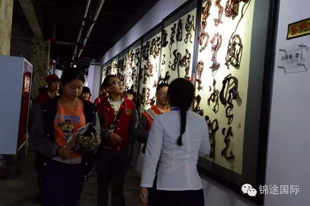 11月2日,第四站:文化之乡——五通桥·中国根书艺术博物馆。我校欧燕副校长与根书艺术创始人杨玉冰先生、成都和谐教育发展有限公司曾总共同启动了“中国根书青少年教育实践活动”。同学们观看了视频《根在中国》,并在根书艺术体验区自制了根书艺术作品,体验到了博大精深的根书艺术!