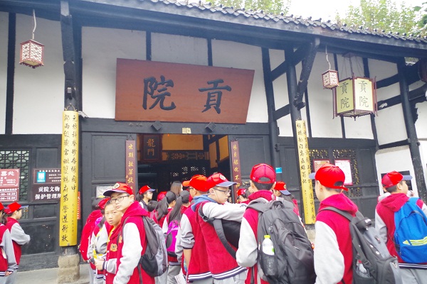 现在同学们所处的位置是四川贡院。这是全国规模最大、内容最丰富、互动性最强的中国唯一清代乡试贡院,也是全国仅存的两处考棚之一,至今保护极好。在这里同学们可以了解到基层选拔人才制度,也能感受到当时科举考试的严肃。要是生在古代,同学们也有可能在这里考试呢!