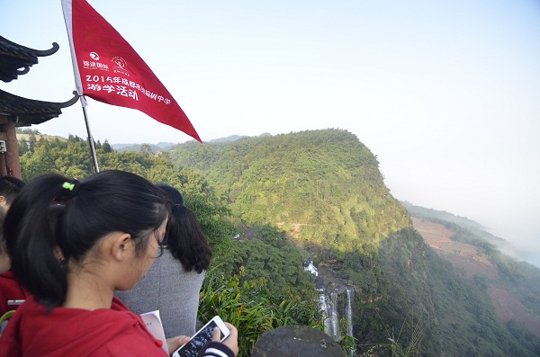 在讲解员的带领下,探秘竹海。此刻赏美丽飞瀑,一览众山小