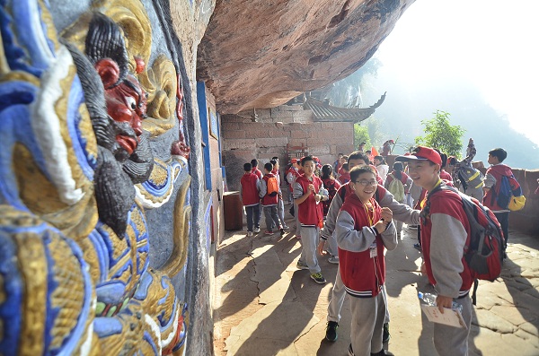 除了观赏美丽的自然风光,同学们也积极完成研学任务——寻找壁画